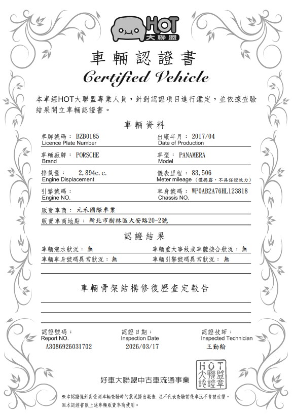 Porsche (58) 2017/04月出廠 Panamera 4S 2.9